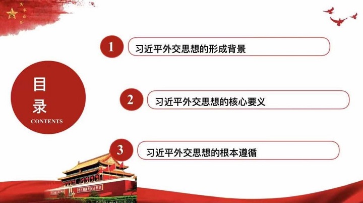习近平外交思想是回答和解决当今世界面临的时代之问的中国方案,是给世界人民带来福祉的人间正道。王丹彤老师从习近平外交思想的形成背景、习近平外交思想的核心要义以及习近平外交思想的根本遵循三方面,详细阐述了在世界处于大发展大变革大调整的国际背景下,习近平外交思想的核心要义具体包括哪些内容,以及习近平外交思想的根本遵循等相关内容。
